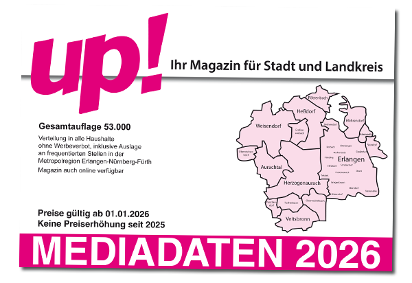 UP! erscheint im Stadtgebiet Erlangen mit allen Ortsteilen, im Landkreis Erlangen- Höchstadt sowie im Landkreis Fürth im Herzen der Metropolregion Nürnberg in einer Auflage von 53.000 Exemplaren.
